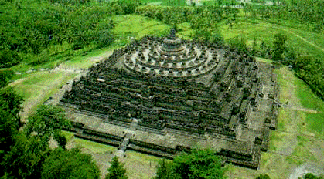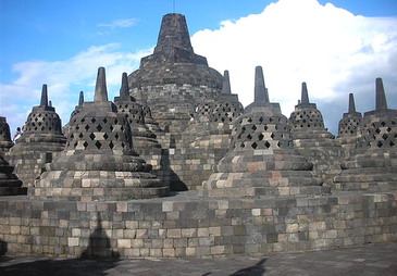 The base of Borobudur, called Kamadhatu, symbolizing human beings that are still bound by lust. Four levels above referred Rupadhatu symbolizes man who had to break free from lust but still bound manner and form. On this terrace, Buddha effigies are placed in open space. Meanwhile, three levels above where the Buddhist stupas are laid in holes called Arupadhatu, symbolizing man who has been free from lust, appearance, and shape. The top part is called Arupa symbolizes nirvana, where Buddha is residing.